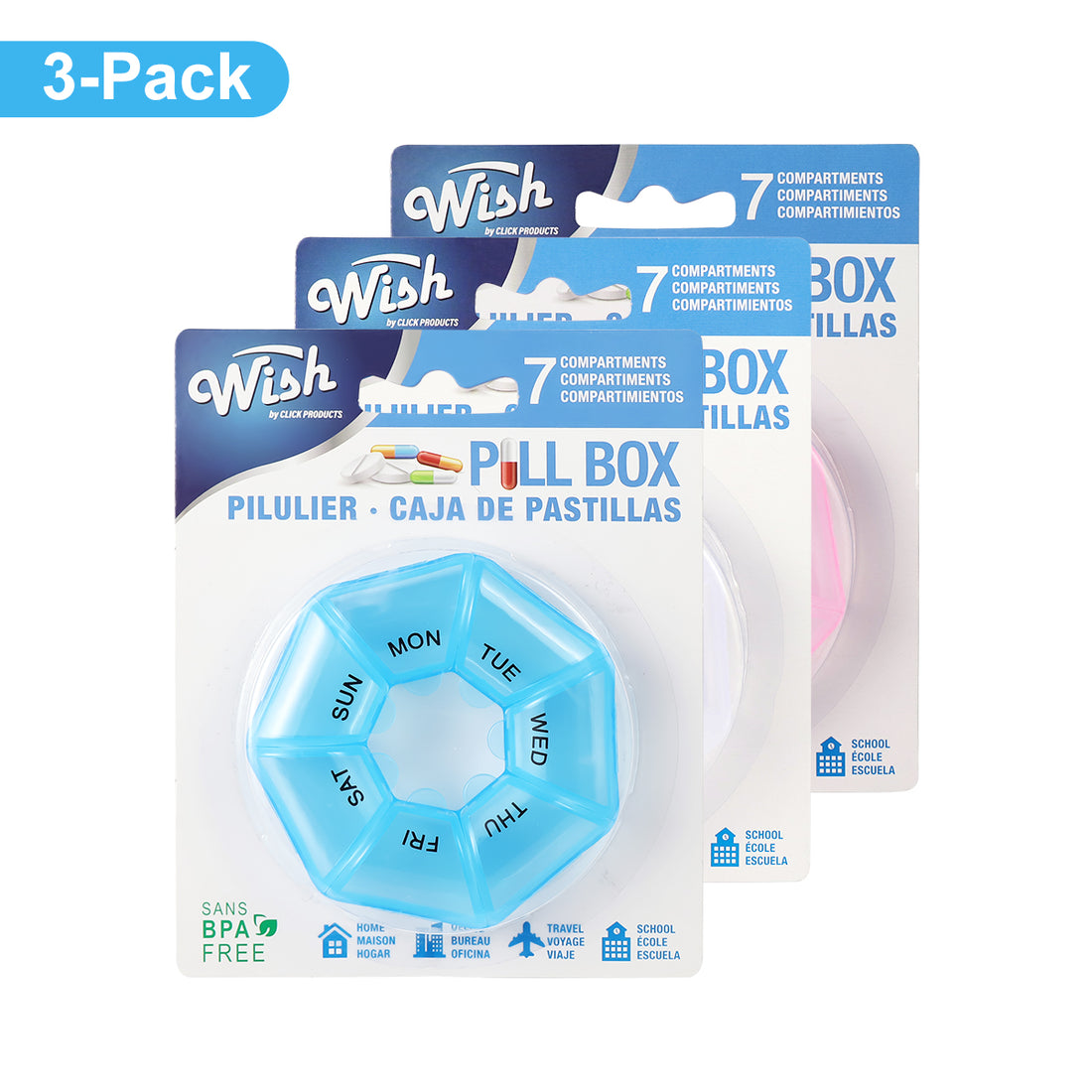 Wish Round 7-Compartment Pill Organizer 3 Pack